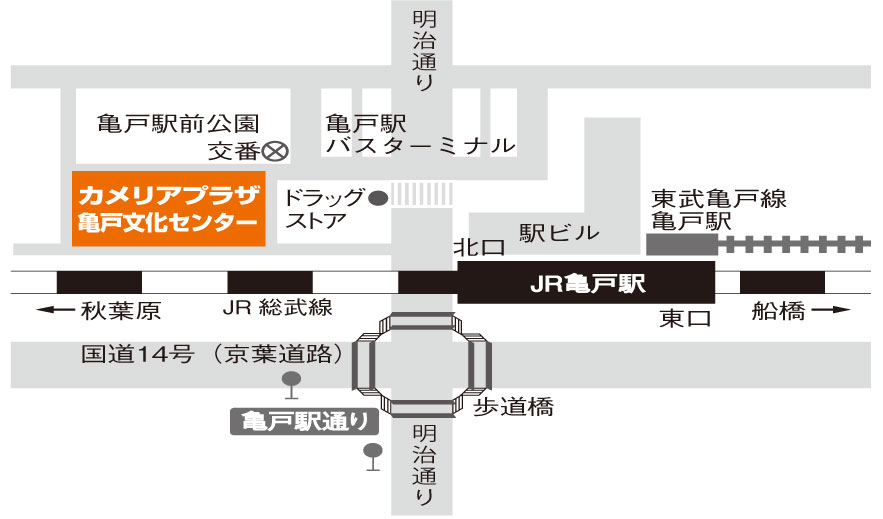 - JR総武線、東武亀戸線「亀戸駅」北口より徒歩2分